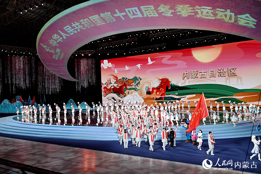 2月17日,內(nèi)蒙古自治區(qū)體育代表團(tuán)在開幕式上入場(chǎng)。人民網(wǎng)記者 富麗娟攝