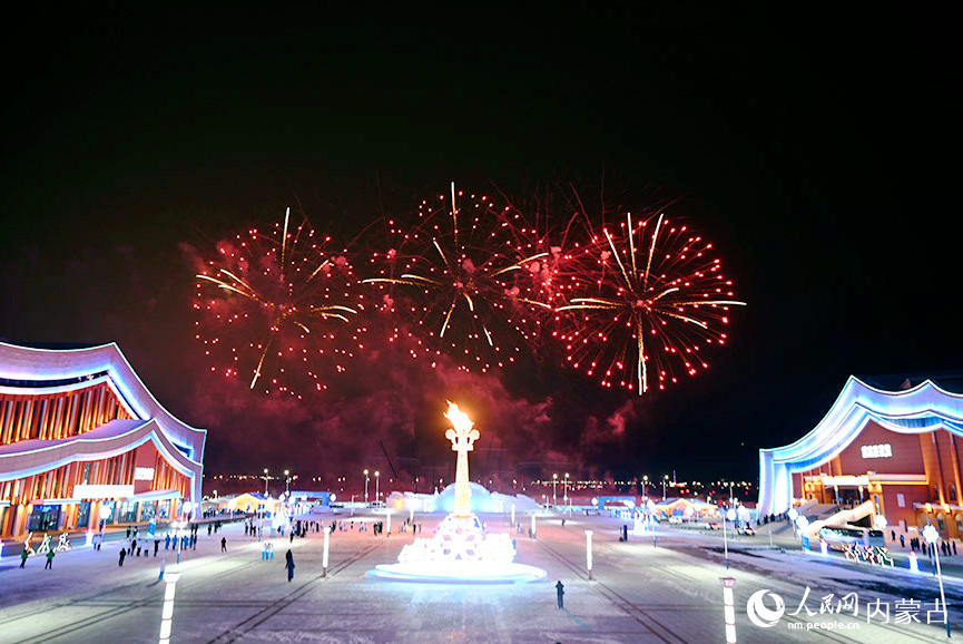 2月17日,開幕式后,進(jìn)行了主題為“魅力‘十四冬’ 亮麗內(nèi)蒙古”的煙花秀表演。人民網(wǎng)記者 富麗娟攝