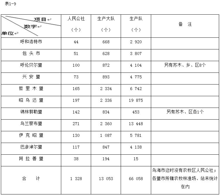 1958~1981年內(nèi)蒙古自治區(qū)部分人民公社表
