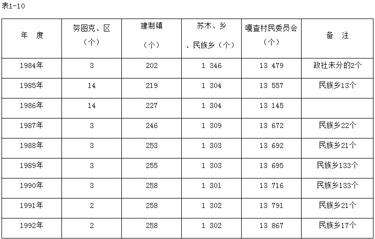1984~1992年內(nèi)蒙古自治區(qū)蘇木、鄉(xiāng)、鎮(zhèn)及群眾性自治組織表
