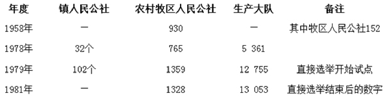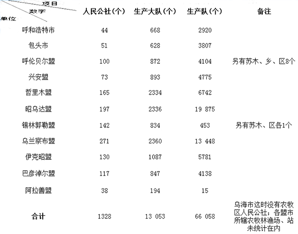 1958—1981年內蒙古自治區(qū)部分人民公社表