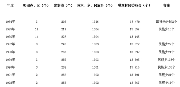 1984—1992年內蒙古自治區(qū)蘇木、鄉(xiāng)、鎮(zhèn)及群眾性自治組織表