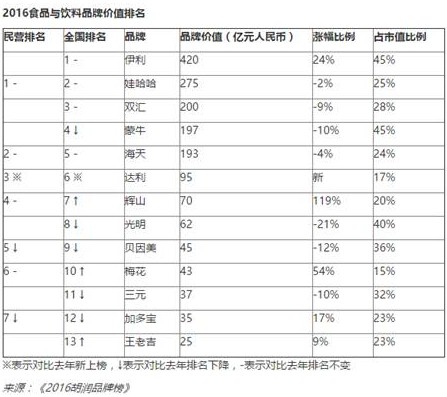 近日,胡潤(rùn)研究院發(fā)布了《2016胡潤(rùn)品牌榜》,共200個(gè)最具價(jià)值中國(guó)品牌上榜。伊利在食品飲料行業(yè)所有上榜品牌中以420億元(人民幣)的品牌價(jià)值排名第一,品牌價(jià)值上升24%。就在幾個(gè)月前,在2016年度BrandZ™中國(guó)最具價(jià)值品牌100強(qiáng)榜單中,伊利集團(tuán)以62.35億美元的品牌價(jià)值,蟬聯(lián)食品類排行榜第一,品牌價(jià)值和去年同期相比提升了22%。