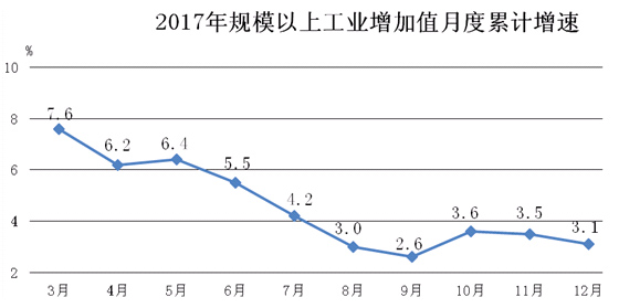 2017年,全部工業(yè)增加值5109.0億元,比上年增長3.6%。其中,規(guī)模以上工業(yè)企業(yè)增加值增長3.1%。在規(guī)模以上工業(yè)企業(yè)中,國有控股企業(yè)增加值增長15.3%,股份制企業(yè)增加值增長2.8%,外商及港澳臺投資企業(yè)增加值增長5.8%。在規(guī)模以上工業(yè)企業(yè)中,輕工業(yè)增加值下降9.7%;重工業(yè)增加值增長5.4%。