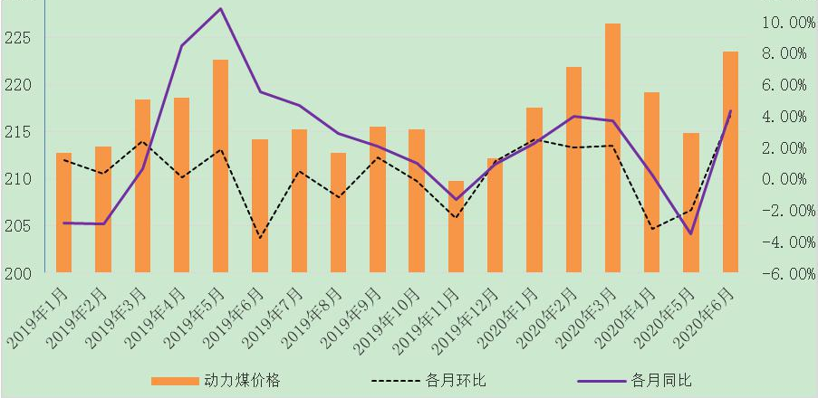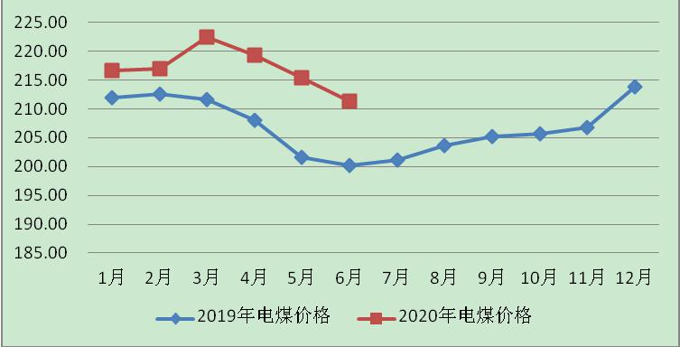 上半年全區(qū)動力煤平均坑口結(jié)算價格為220.57元/噸,較2019年下半年(下稱環(huán)比)上漲3.34%,較2019年上半年(下稱同比)上漲1.81%。1—6月,全區(qū)煤炭價格整體呈“漲降漲”的三段式“N”字型走勢。第一階段:1—3月,受新冠肺炎疫情影響,短期內(nèi)供應(yīng)緊張,煤炭價格上漲;第二階段:4—5月,隨著產(chǎn)出快速增加,但需求不及預(yù)期,價格連續(xù)回調(diào);第三階段:5月下旬開始,受進口減少、產(chǎn)地供應(yīng)偏緊等因素共同影響,煤炭價格重拾上漲走勢。