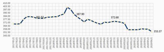 2017—2020年6月全區(qū)水泥價(jià)格走勢(shì)