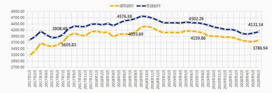 2017—2020年6月全區(qū)鋼材價(jià)格走勢(shì)