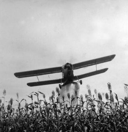 在科左中旗農(nóng)作物區(qū)進(jìn)行撒藥防治蚜蟲