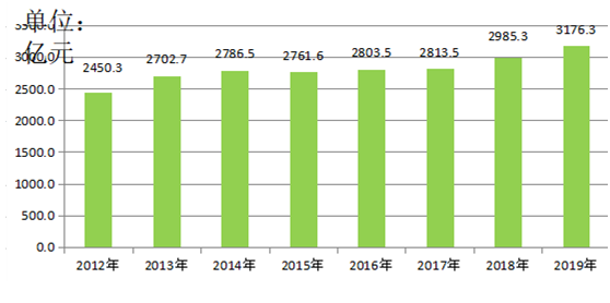 圖1 2012—2019年內(nèi)蒙古農(nóng)林牧漁業(yè)總產(chǎn)值圖