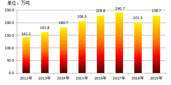圖3 2012—2019年內(nèi)蒙古油料產(chǎn)量圖