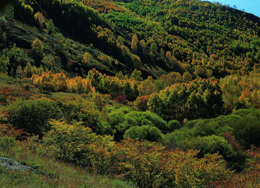 大青溝之所以美麗和神奇,主要是在它的周圍千里之外沒有珍稀樹木和奇花異草,而在這里卻是應有盡有。春天,溝內植物開花1個月后,溝外的植物才剛開花;夏季,溝外還是暴熱的天氣,驕陽烤得人透不過氣來,而溝內薄霧繚繞,清涼宜人,有時溝外是晴朗的天氣,溝內還下著毛毛細雨。冬天,溝上氣溫達零下二三十度,可溝內泉水仍在流淌,野芹菜茁壯生長,溝底下的植物一片蔥翠,充滿著春天的氣息。每當深秋時節(jié),大青溝的景色更為迷人。當你登上大、小青溝匯合處的三岔口制高點的涼亭上,放眼望去,大、小青溝盡收眼底,此情此景令人心曠神怡。整個大青溝以其磅礴之勢,雄渾之態(tài),披紅著綠,絢麗如錦,令人心醉的魅力呈現(xiàn)在你的眼前。那深青、碧綠、淺黃、朱紅、淡紫各種各樣的色彩交相輝映,間雜在一起,一片斑駁,五彩繽紛,真是令人目滿神眩,贊嘆不已。特別是那鮮紅的五角楓林,在陽光的照耀下,像燃燒的火焰,紅得非常可愛。大青溝以它獨特之美,吸引著各地游人。1984年,國務院批準通遼市為對外開放城市后,自治區(qū)將大青溝自然保護區(qū)列為旅游景點,前來觀光的游人與日俱增。自然景觀除了仙人橋、夫妻樹、五兄弟樹、五角楓等處以外,近年來,又修建起一些新的旅游景點,有美麗的菊麗瑪女神石雕像和金光閃閃的金龍劍以及白沙灘浴場、小青湖碼頭。這里的騎馬場和射箭場所,獨具蒙古民族的特點,可供游人們觀賞、游玩。在這里,當你登上那高高的瞭望樓極目遠望,或通過民族英雄嘎達梅林小路漫游在森林之中,或乘坐輕舟蕩漾于碧波之上,或躍馬揚鞭、或騎上駱駝奔跑在曠野之間,或圍在菊麗瑪女神雕像前細聽導游小姐講述著神話故事之時,無不使人感受到大自然帶給人間的幸福,領略到大青溝特有的神韻。