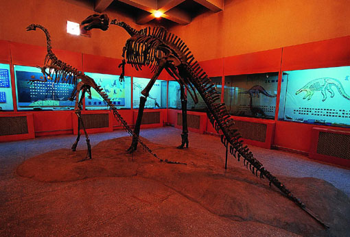 位于錫林郭勒盟二連浩特市。是內(nèi)蒙古最早列入國(guó)際古生物史冊(cè)的恐龍化石產(chǎn)地。早在7 000萬年前,二連鹽池一帶遍布湖泊沼澤,氣候濕熱,林木茂密,是恐龍生息繁衍的樂園。從十九世紀(jì)90年代開始,100年中,先后有俄、美、加等國(guó)和我國(guó)的古生物學(xué)家、地質(zhì)學(xué)家在這里進(jìn)行過6次大型考察和挖掘 ,已陸續(xù)發(fā)現(xiàn)盤足龍、歐氏阿萊龍、鴨嘴龍、似鳥龍、甲龍、角龍化石十余種,有大量較完整的各類恐龍骨骼化石出土,其中恐龍蛋化石的發(fā)現(xiàn)在我國(guó)尚屬首次。