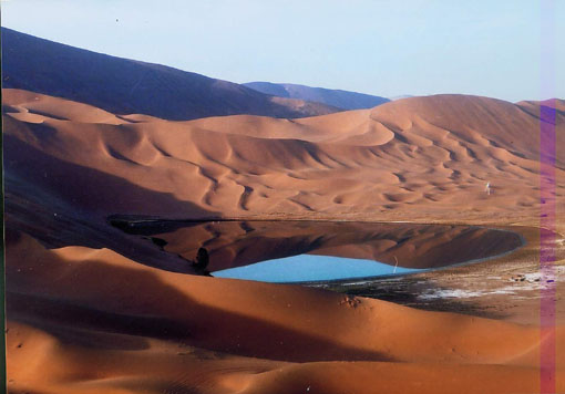 由磴口縣城西行數(shù)里便可觀賞到聞名天下的烏蘭布和沙漠。它延伸到磴口縣境內(nèi)的面積達(dá)2 846平方公里,茫茫沙海,浩渺如煙,沙崗連綿,隱沒(méi)天際,海市蜃樓時(shí)隱時(shí)現(xiàn),綠洲湖泊星羅棋布。內(nèi)有天然大小淡水湖泊200多處。最大的敖勒孫湖面積達(dá)600多公頃,距縣城