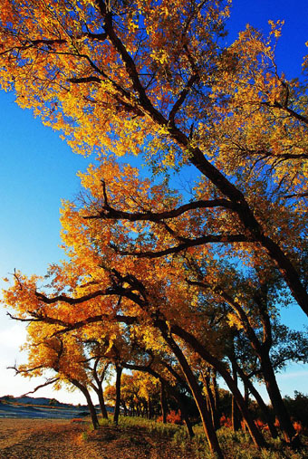 在大漠人的眼里,胡楊是抗風(fēng)沙的英雄。它有龐大的水平根系,在土層中延伸半徑長(zhǎng)達(dá)20~