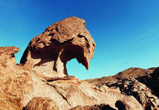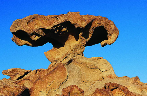 - 位于阿拉善右旗努日蓋蘇木境內(nèi),距旗府所在地220公里。“海森楚魯”為蒙古語音譯,漢語意為像鍋一樣的石頭。在方圓二十余公里的地方,大到幾十立方米,小到拳頭大小的風蝕原石隨處可見,怪石林立,形態(tài)各異,有像臨空欲飛的碩大雄鷹,有像“蘑菇云”……各式各樣,栩栩如生,與云南石林、黃山怪石相比也并不遜色,使人感到大自然的無窮魅力。據(jù)專家考證,此處的怪石質(zhì)為花崗巖,在數(shù)千年前,此處為海底,巖石經(jīng)過海水長期沖刷,形成了圓形、橢圓形或錐形;后來由于地質(zhì)結構的不斷變遷,海底上升為陸地,原石經(jīng)過風力剝蝕,逐漸形成了如此怪異的形狀。在清朝年間,甘肅高臺縣府發(fā)現(xiàn)了這個別致的怪石區(qū),并把它命名為“石城”;景區(qū)內(nèi)有數(shù)股泉水,最大的一股又被稱為“石城泉”,又因為泉水所在的巨大原石形同一尊臥佛,所以又被稱為“臥佛泉”。上面刻有“康熙三十八年四月十五日高臺縣府李親來到此石城泉”的字樣。據(jù)傳,為清朝年間高臺縣府在此開金礦所遺留,具有一定的史學研究價值。海森楚魯怪石景由于形狀怪異奇特,怪石面積大,具有開發(fā)價值和潛力。