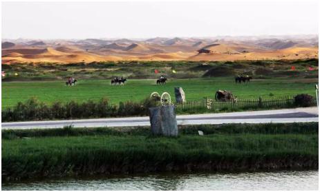 通湖草原沙丘環(huán)抱,內(nèi)有4平方公里的濕地,綠草茵茵,空氣清新,蒙古包群民族風(fēng)情濃郁。整個(gè)景區(qū)內(nèi)主要由浩瀚的騰格里沙漠、綠草茵茵的草原、形形色色的湖泊和拔起于大漠與草原間的駱駝山等各具特色的自然資源組成。在大自然的造化下,它們既各自獨(dú)立又和諧組合,魅力多姿,美奐美倫。景區(qū)道路兩側(cè)的人工治沙工程氣勢(shì)宏偉;湖泊景區(qū)內(nèi)蘆花搖曳,野禽嬉戲。您可在草原景區(qū)內(nèi)或騎馬、或徒步、或騎駱駝,讓您領(lǐng)略草原人的風(fēng)情;還可乘駱駝北行,深入沙漠腹地,目睹灌木林和人工綠洲,以及神奇的河泉清溪。