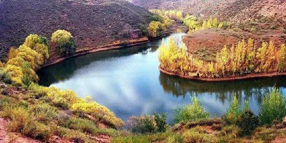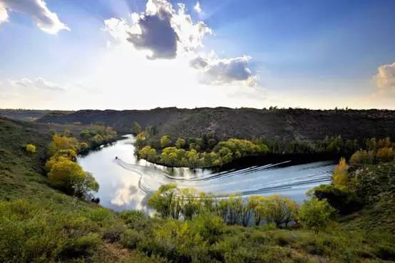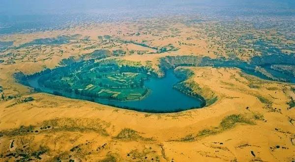 大溝灣在鄂托克前旗段長(zhǎng)18公里,蜿蜒曲折,九轉(zhuǎn)回腸,河床下切陡立,稱之為“沙漠大峽谷”。溝底流水潺潺、草木蔥籠,桃花園、琵琶島、水簾洞坐落其間,兩岸平坦開(kāi)闊,是當(dāng)?shù)丶Z食主產(chǎn)區(qū)。