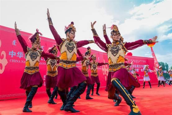 2017年8月31日,蒙古族搏克選手在那達(dá)慕上表演。當(dāng)日,2017年和林格爾“蒙草情”歡樂那達(dá)慕在呼和浩特市和林格爾縣舉行。本次那達(dá)慕歷時3天,將舉辦賽馬、摔跤、射箭、蒙古族服飾展演、非遺文化展示等活動,讓游客近距離感受蒙古族的草原文化魅力,樂享秋日時光。(責(zé)任編輯:石毅 丁根厚 攝)