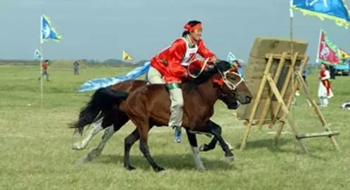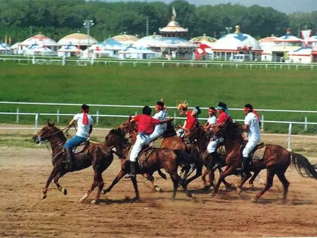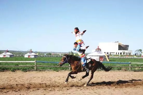 在內(nèi)蒙古賽馬場可觀賞到精彩的馬上體操、乘馬斬劈、馬上射擊、射箭、輕騎賽馬、馬上技巧等蒙古民族傳統(tǒng)體育節(jié)目。賽馬場東南角辟有蒙古大營,游客在這里可以品嘗蒙古族風(fēng)味飲食,欣賞蒙古族歌舞。