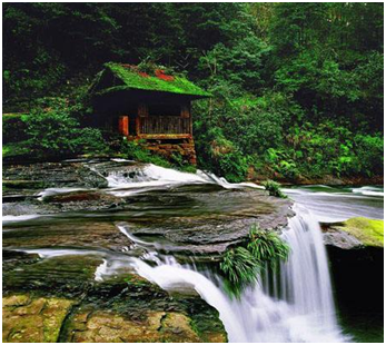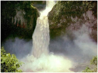 老哈河從翁牛特旗牧地流經(jīng)敖漢旗北境的一石山中,本應向東北低處的沙地流去,但它卻獨辟蹊徑,拐了個90度的大灣子躍進石山。把石山劈為寬50米、深30米、長約700米的深谷,河水以每秒幾十米的速度飛瀉而下,并發(fā)出雷鳴般的巨響,形成雄偉、壯麗的瀑布(當?shù)厝朔Q為響水)。