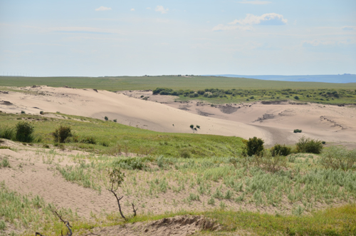呼倫貝爾沙地的氣候具有半濕潤、半干旱的過渡特點,沙地境內的河流、湖泊、沼澤較多,水分條件優(yōu)越,年平均氣溫較低,年降水量多集中于夏秋季。沙地土壤中含沙量較大,一般多為中、細沙。風沙主要分布在沙漠及其外圍的沙質平原上,在固定的風沙土中,發(fā)育著有機質含量較高的黑沙土。近年來由于人們過度放牧,使得呼倫貝爾陳巴爾虎旗草原開始退化,從而形成中國的第四個沙地,而且是四大沙地中唯一仍在擴展的沙地。