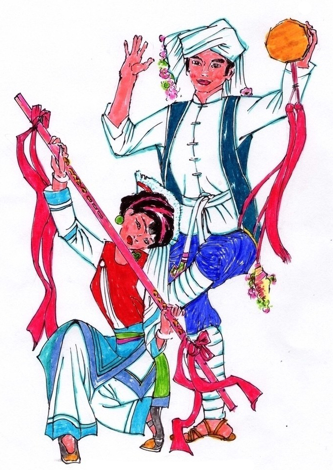 新城八角鼓的打法多種多樣,可以擊打正面、反面、鼓上沿、鼓側(cè)邊、鼓環(huán)等多部位,又有鞭擊、手叩、掌環(huán)、顛環(huán)、抖環(huán)等各種擊打方法。概括起來主要有搖、碰、彈、挫、掐、拍、舞七種。搖:左手持鼓搖晃,使鼓發(fā)出小镲聯(lián)奏的唰啦啦的聲音。碰:左手持鼓向右橫碰右手指使鼓發(fā)出碰鼓之聲,但右指蓋要彎曲向左找碰鼓面。彈:主要以右手指彈為主,方法有單指法、雙手指對(duì)彈、聯(lián)彈等。挫:以右手大拇指從鼓面外沿邊逆轉(zhuǎn)向上圓圈至里沿邊一周360°處由食指彈鼓面一聲,并催動(dòng)鼓小镲發(fā)出響聲。掐:以左手中、大、食指掐住鼓內(nèi)的鑼釘,再以左四指和小指有節(jié)奏地緊掏手心,使鼓發(fā)出有節(jié)拍的唰唰聲。拍:左手持鼓,右手單拍鼓面,鼓音豁然沉悶,表現(xiàn)奏完靜止,多在演完結(jié)尾時(shí)用。舞:鼓是舞具,可持之跳舞;舞法有三,一是輪舞,二是舉鼓舞,三是甩舞。太平鼓的打擊名稱很多,主要有“蘇秦背劍”“雄鷹展翅”“梅花點(diǎn)點(diǎn)”“鷂子翻身”“聯(lián)三跨五帶克蹦”“上托下?lián)簦峦猩蠐簟钡取0私枪乃囆g(shù)至今在呼和浩特市新城區(qū)仍很盛行。