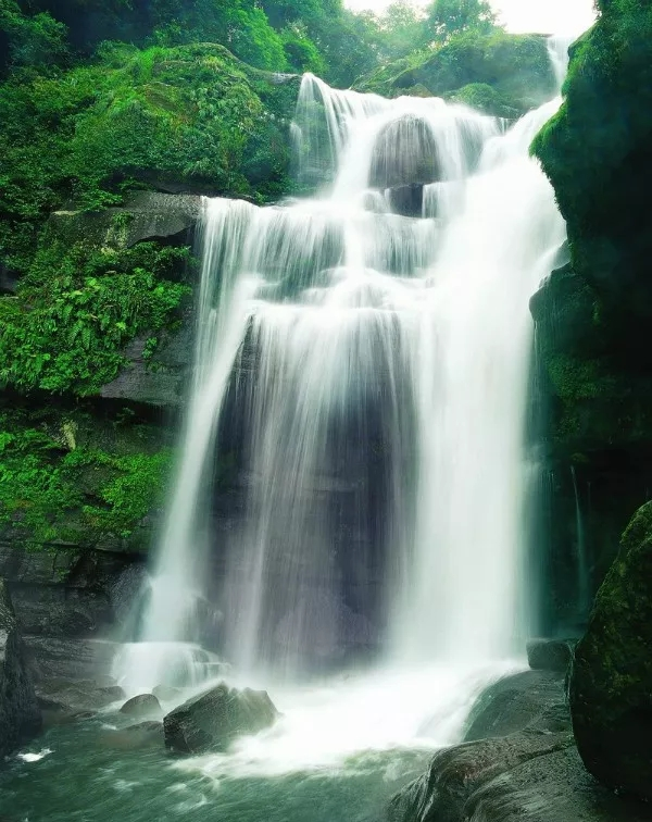 河南岸矗立著一個(gè)“太師石椅”,坐高10米,寬2米,長(zhǎng)19米,靠背高17米,扶手左右對(duì)稱。石椅結(jié)構(gòu)準(zhǔn)確,形象逼真。石椅西側(cè)18米處,有一個(gè)高約22米,直徑11米的石樁,形如“寶塔”,傲立挺拔,甚為雄奇。石樁兩側(cè)的石坡上,有十幾個(gè)碗口大小的印痕,酷似馬蹄印,傳說是清康熙皇帝乘馬觀瀑布時(shí)留下的。