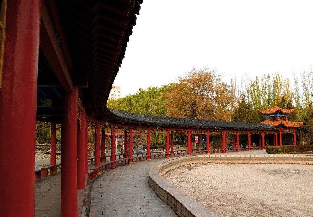 “敕勒天蒼”根據(jù)《敕勒歌》中的詩(shī)句,“敕勒川,陰山下,天似穹廬,籠蓋四野,天蒼蒼,野茫茫,風(fēng)吹草低現(xiàn)牛羊”取名。設(shè)置5個(gè)蒙古包,附近培植自然草地。邊緣有野生花卉,后面植松樹(shù),在自然草地中設(shè)置雕塑,聯(lián)想草原牧民生活,對(duì)景是釣魚(yú)臺(tái),背景是叢林土山,體現(xiàn)內(nèi)蒙古特點(diǎn)的草原風(fēng)光。