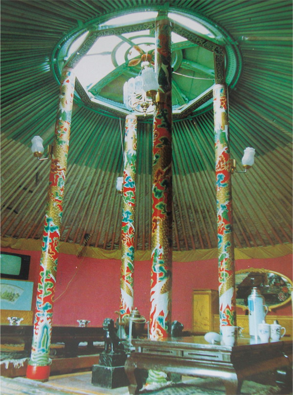 13世紀(jì)時,蒙古族建立了橫跨歐亞大陸的封建王朝。皇帝和貴族們?yōu)榱孙@示其豐功偉績,將蒙古包裝飾的豪華至極。不論是在容納程度,還是在裝飾上都花費了大量的人力、物力,使蒙古包的發(fā)展進(jìn)入了鼎盛時期。20世紀(jì)50年代初,內(nèi)蒙古的阿巴嘎旗還有幾個宮殿式蒙古包。當(dāng)?shù)厝朔Q其為“斡日格”或“達(dá)來·查干·斡日格”。其中有1個斡日格搭于人工修整過的砥石上,內(nèi)有4根繪有蟠龍的大紅柱,外有3尺余高的金頂。
