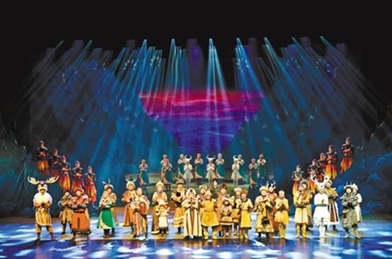 “你曾是大森林的主宰,你曾是興安嶺的獵神。你是放得下獵槍拿得起未來的巨人。你的名字叫鄂倫春!”作為綜合性舞臺(tái)藝術(shù)的“歌舞詩”,即使歌聲振聾發(fā)聵,舞蹈靈動(dòng)超卓,道具運(yùn)用巧妙,而靈魂還是在于能夠明晰而準(zhǔn)確表達(dá)思想的語言,所以,尾聲中的這首唱出來的“宣言”,便完成了鄂倫春文化從“神奇”“神秘”到“神圣”的歷史進(jìn)程。