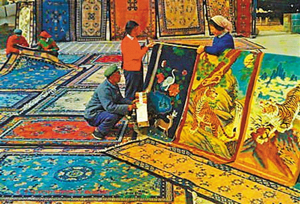 我國最早的地毯實物出土于新疆民豐縣“尼雅遺址”的夫妻合葬墓,根據(jù)出土的竹簡記載,它應(yīng)是漢代的制品。漢朝,地毯曾同絲綢一樣在中外交流中受到青睞。