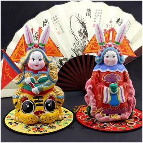 清朝末年,在綏遠(yuǎn)八旗駐防城,一些人為哄逗幼童,常用泥雕塑一些娃娃、公雞、小貓、小狗和兔兒爺?shù)龋仙笫趾每矗谷藧鄄会屖帧S幸皇淄{云:“兔兒爺真叫神,大紅帥袍穿在身,將軍鎧甲金閃閃,背插靠旗好威風(fēng)。”這說明兔兒爺是孩童們的最愛和最走俏的泥塑品了,因?yàn)樵跐M族人心中,八月十五中秋節(jié)拜月供品中有一份是給月宮玉兔這位神仙的。辛亥革命后,民國政府取消了旗人的錢糧俸祿,滿族人因而斷了生計(jì),為謀生活命,一些人以泥塑為業(yè),設(shè)法生存,從而也客觀地促進(jìn)了泥塑業(yè)的發(fā)展。