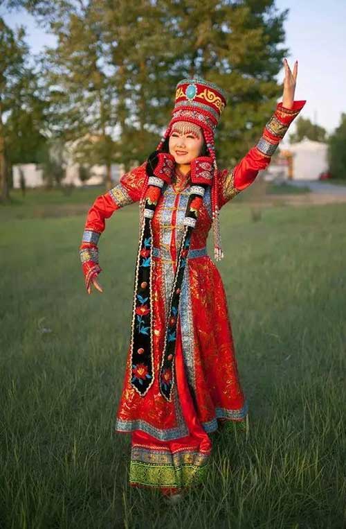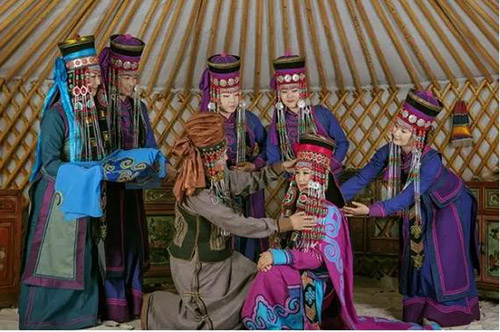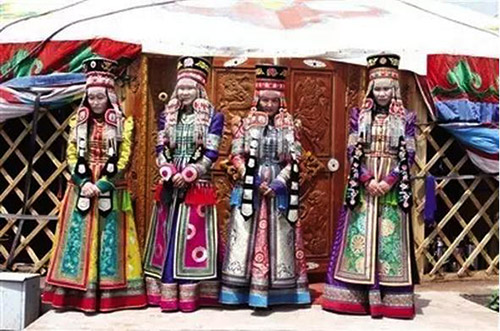 鄂爾多斯男子坎肩短而肥,有錦緞鑲邊,以青色、棕色為主,穿起來莊重、大方。在以前,鄂爾多斯男子也曾穿著釘有81個扣袢的“巴圖魯”坎肩,類似于武士的護身甲。