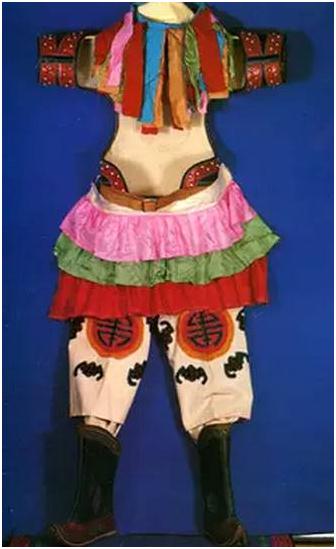 摔跤是蒙古族的競技項目之一,是節(jié)日和祭祀活動中不可缺少的內(nèi)容。摔跤服是摔跤手出場比賽時所穿的服裝,具有非常鮮明的民族特色。