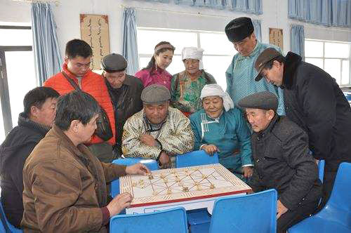 “賽馬”,參賽者各選一只有標(biāo)記的“夏嘎”為自己的“馬”,然后將其余的“夏嘎”擺成長行,賽者擲自己的“馬”,擲幾個(gè)馬則走幾步,誰先到終點(diǎn)誰為贏。
