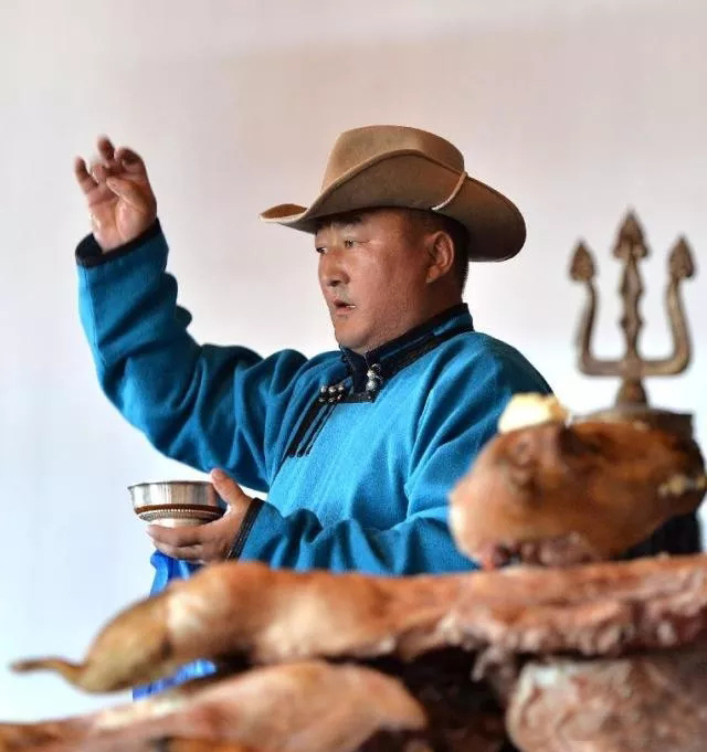 “薩察禮”為蒙古語,意指“向諸神祭灑的奶子或其它食物”。而薩察禮則指進食前或進行祭祀儀式時,向天地諸神祭灑飲食,即薩察禮,感謝神的賜予,并祈求神賜予其幸福安康的一項祭祀禮儀。蒙古人認為,所有飲食都由天地、祖先所賜,因此在食用飲食前進行薩察禮,以表感恩之情。