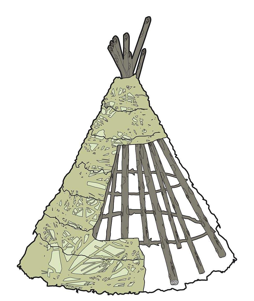 窩棚是北方草原地區(qū)狩獵民族最為典型的居住形式,蒙古語(yǔ)稱“道布·格日”。《隋書·室韋傳》載,缽室韋“用樺皮蓋屋”。蒙古先民早在森林之中以游獵為生時(shí),亦以窩棚式房屋為常居之所。