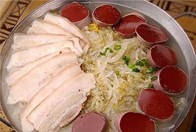 食用時(shí),將白肉和血腸佐以蒜泥、韭菜花、炸醬、辣椒油等。另一食法是將切好的白肉片、血腸片放在酸菜鍋里,并置入調(diào)料和粉條。燉熟后,佐以韭菜花、炸醬、辣椒油、蒜泥、蝦油等食之。該菜肴紅白相間,色美味香;其湯也鮮香味醇可口,營(yíng)養(yǎng)十分豐富。至今,內(nèi)蒙古東部區(qū)滿族在冬季尤為喜食。(摘自《內(nèi)蒙古自治區(qū)志·民俗志》)
