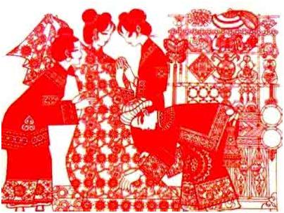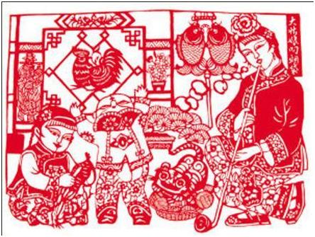 所謂剪紙,是用剪刀剪出來的紙,是由手工制作而成的。常用的方法有兩種:剪子剪和刀子刻。剪子剪,是借助于剪刀對紙張進行圖案加工;刀子刻,是先將紙張折成數(shù)疊,再用鋒利的小刀慢慢刻畫,與剪刀相比,它的優(yōu)勢是一次可加工成多個剪紙圖案。