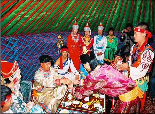 尚“白”,蒙古族自古以來把奶視為飲食的上品,不論牛奶、羊奶、馬奶或駝奶都是白色的。蒙古族居住的蒙古包是白色的。穿的羊毛和羊皮,多為白色。愛穿白色衣服,愛戴白毛巾。在莊重場合,獻潔白的哈達,表達心情,在日常生活中習(xí)慣用白色,有崇尚白色的習(xí)俗。