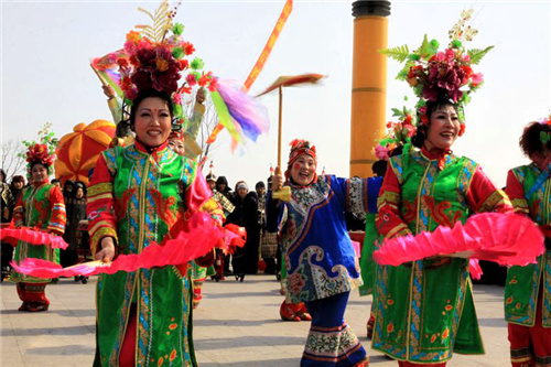 秧歌是滿族人十分喜愛(ài)的歌舞。早在清朝初年,每逢喜慶佳節(jié),滿族人就載歌載舞,予以慶賀。據(jù)《柳邊紀(jì)略》記載:“上元夜,好事者輒扮秧歌。秧歌者,以童子扮三四婦女,又三四人扮參軍,各持尺許兩圓木,戛擊相對(duì)舞;而扮一持傘燈賣膏藥者前導(dǎo),傍以鑼鼓和之,舞畢乃歌,歌畢更舞,達(dá)旦乃已”可知,秧歌表現(xiàn)了滿族在上元節(jié)的喜悅與歡樂(lè)。清乾隆、嘉慶年間,隨著滿漢文化的交融,在吸收了漢族秧歌優(yōu)點(diǎn)的基礎(chǔ)上,滿族的秧歌又有了創(chuàng)新和變化。據(jù)《奏天通志》記載:“按今之秧歌與此微異,前導(dǎo)者反穿皮褂,斜披串鈴,手執(zhí)長(zhǎng)鞭,前行開(kāi)路;繼其后為一參軍,靴袍褂,挎腰刀;繼為沙公子,漢裝之生,手持折扇;繼為老叟,傴僂掛杖;繼為老嫗,耳掛紅椒,手執(zhí)蒲扇;繼則丑旦相匹偶,或十?dāng)?shù)。賣膏藥者殿其后。行列環(huán)行,錯(cuò)綜歌舞,間以科白、鼓、鈸和之。”這說(shuō)明,滿族接受漢族的秧歌后,按照本民族的審美興趣、民族心理和生活習(xí)慣去改造秧歌,發(fā)展秧歌,并將本民族的某些舞蹈融會(huì)其中。如參軍為旗裝打扮,頭戴紅纓涼帽,斜挎腰刀等。在舞蹈動(dòng)作和風(fēng)格上,滿族的秧歌多是大開(kāi)大合大扭擺,還有許多模擬征戰(zhàn)和狩獵的姿勢(shì),如鷹步、虎步、熊步、丁字步、蹶子步、大跨步、醉酒步、拉蹲步等。這些動(dòng)作奔放、姿態(tài)優(yōu)美的舞姿,顯示出滿族人濃郁的漁獵和征戰(zhàn)的生活色彩,也反映了滿族人古樸、粗獷、豪放的民族氣質(zhì)和崇尚武功的民族精神。