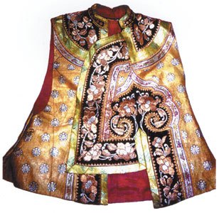 內(nèi)蒙古自治區(qū)的滿族男子喜穿琵琶襟式坎肩,其樣式是右大襟到近下擺處相左轉(zhuǎn)到肚臍處向下,再與下擺處齊平,以至下襟缺失一小截,為上下馬便利。婦女坎肩多為對(duì)襟式,衣襟處大多鑲有艷麗的花邊。坎肩原為旗袍的配套服飾,小可穿在旗袍內(nèi),大可套在旗袍外,十分美觀。現(xiàn)代坎肩除保持原有無袖的特點(diǎn)外,在用料、樣式等方面已發(fā)生很大變化。