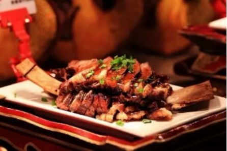 由整羊背胸椎、肩胛、脛骨、髖骨及長(zhǎng)肋等組成。整羊背下鍋后煮熟(同手把肉),這道菜,是在較大宴會(huì)和招待貴客時(shí)食用,是僅次于全羊宴的蒙古族傳統(tǒng)菜肴。