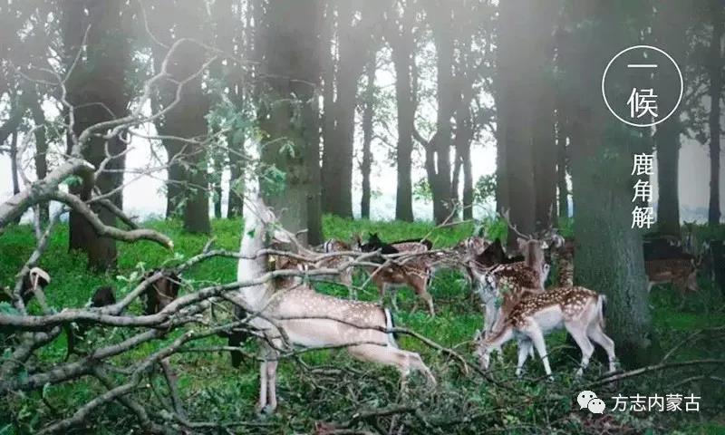 一候鹿角解:鹿的角屬陽,夏至日陰氣生而陽氣始衰,所以陽性的鹿角便開始脫落。