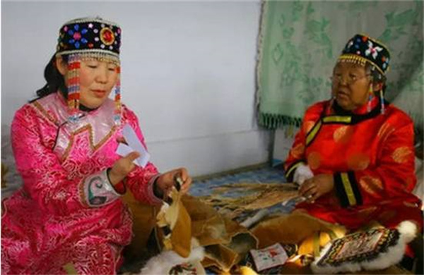 鞋要穿“奧勞其”。男人戴用布做的尖頂“巴里紗”帽,這種帽子后檐一直垂到兩肩和后背,遮住整個頭部和后頸部,遮日曬又防蚊蠅叮咬。男性老人戴布質(zhì)瓜皮帽。女人一般不戴帽子,有的流域戴“奇哈屯”頭飾,一種很像頭箍的頭飾,用布做成條狀頭箍,縫飾著紐扣和貝殼,還繡上各種花紋,兩鬢處垂綴大小不同的各色瑪瑙、珍珠珠串,在陽光下閃閃發(fā)光。老年婦女用一塊毛巾、布或頭巾把頭扎起來即可。一些流域的女人曾經(jīng)用過辮套,就是把辮子裝在細(xì)長的條管形辮套里。