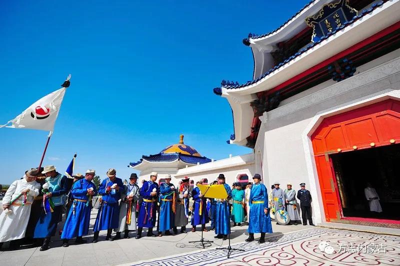 《成吉思汗陵祭祀歌》 成吉思汗逝世后,其子孫遵照蒙古薩滿教儀禮,設立靈堂,舉行隆重祭祀活動。成吉思汗的守陵人,定為世襲制,他們世代相傳有12首祭祀歌曲,其歌詞被守陵人稱作“天語”,深奧難懂,目前無法解釋。12首祭祀歌曲的音樂與語言音調節(jié)奏密切結合,帶有薩滿教神曲的吟誦風格。