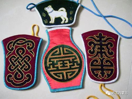 蒙古族民間圖案是蒙古族民間藝術(shù)中最基本、也是最主要的構(gòu)圖要素之一。從文化內(nèi)涵而言,圖案承載著蒙古族所特有的思維形態(tài)與審美觀念,是蒙古族民間藝術(shù)的靈魂所在。蒙古族民間圖案的花紋種類多、應(yīng)用范圍廣、造型特征獨(dú)具特色。可以概括為組合結(jié)構(gòu)、犄形結(jié)構(gòu)、繩編結(jié)構(gòu)、方形與圓形結(jié)構(gòu)、萬(wàn)字紋結(jié)構(gòu)與回紋結(jié)構(gòu)等幾大種類。同樣,色彩搭配亦細(xì)膩講究,一般比較注意明暗與補(bǔ)色地對(duì)比、調(diào)和色與退暈法的利用等。此外,更能表現(xiàn)蒙古族圖案藝術(shù)特點(diǎn)的是其內(nèi)在的象征意義。