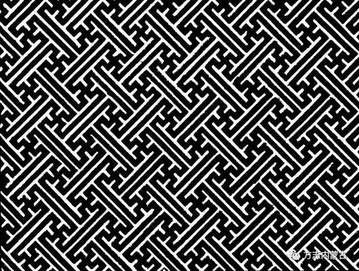 阿魯汗紋即回紋,是普遍流行于世界各地的一種幾何形圖紋。從蒙古高原發(fā)現的陶器上的該類圖案推斷,早在青銅時代蒙古先民便開始運用這種圖案來裝飾美化自己的生活用品。古希臘人認為,這種圖案產生與亞細亞地區(qū)明德列斯的河蜿蜒流淌的樣子有關。但蒙古族神話中卻說,阿魯汗紋是由拴馬駒或牛犢的一種叫“奇格達”用具的形狀而構思出的。現在,蒙古語中“阿魯汗·賀”則具有穿插交錯的意思。蒙古族圖案藝術中,最常見的阿魯汗紋基本上可以歸納為兩大類。這兩類阿魯汗紋又有幾種不同的變化形式。