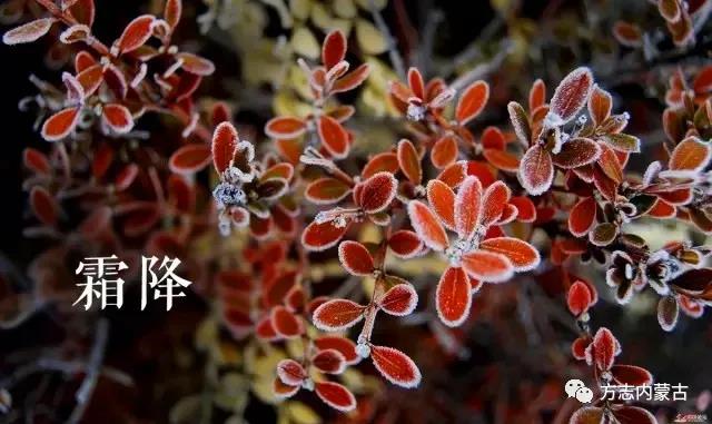 《月令七十二候集解》載:九月中,氣肅而凝,露結(jié)為霜矣。“霜降”表示天氣逐漸變冷,露水凝結(jié)成霜。