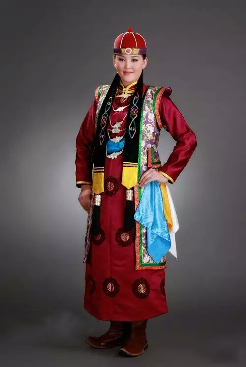 男裝在以前冬著白板袍子(富者吊布面),開衩;冬季戴圓耳氈帽或草原帽,夏季戴尤登帽或用白綢、白毛巾扎頭。而女子長袍不開衩。衣邊有各種圖案的繡花邊或金銀絲縫邊。姑娘扎腰帶,已婚婦女不扎腰帶。女予以彩綢或紗巾纏頭。腳蹬自己熟皮、自己制作的各季用的鞋靴,上繡有各種圖案。